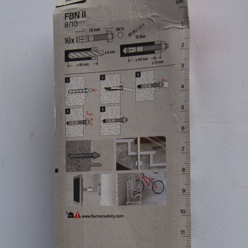10 Goujons d’ancrage FBN II BP K 8/10 D.8 x 70mm . FISCHER ref. 545959.  Capacité de charge maximale dans le béton non fissuré, ce qui signifie moins de points de fixation et des platines plus petites. Montage simple grâce à un nombre réduit de coups de marteau et à un glissement minimal. La partie saillante de la tige filetée protège le filetage des dommages. Ceci permet de gagner du temps lors du montage et du démontage.