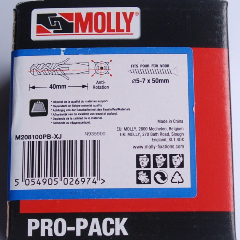 100 Chevilles nylon 8 x 40mm. Ref. M208100PB-XJ MOLLY