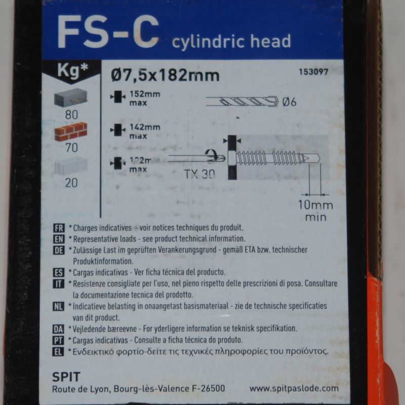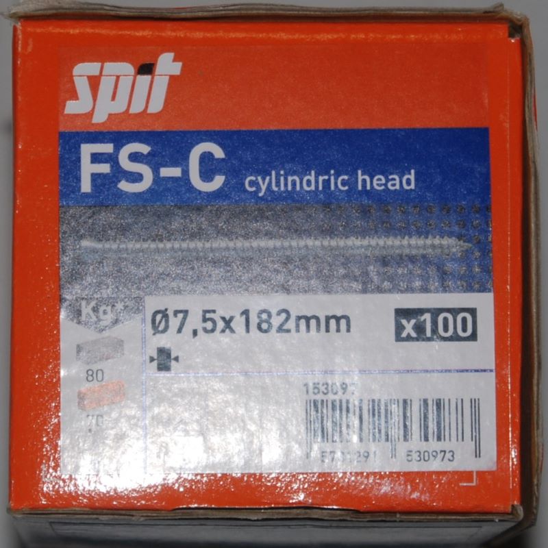 100 Vis béton huisserie FS-C 7,5 x 182mm. Réf. 153097 SPIT.