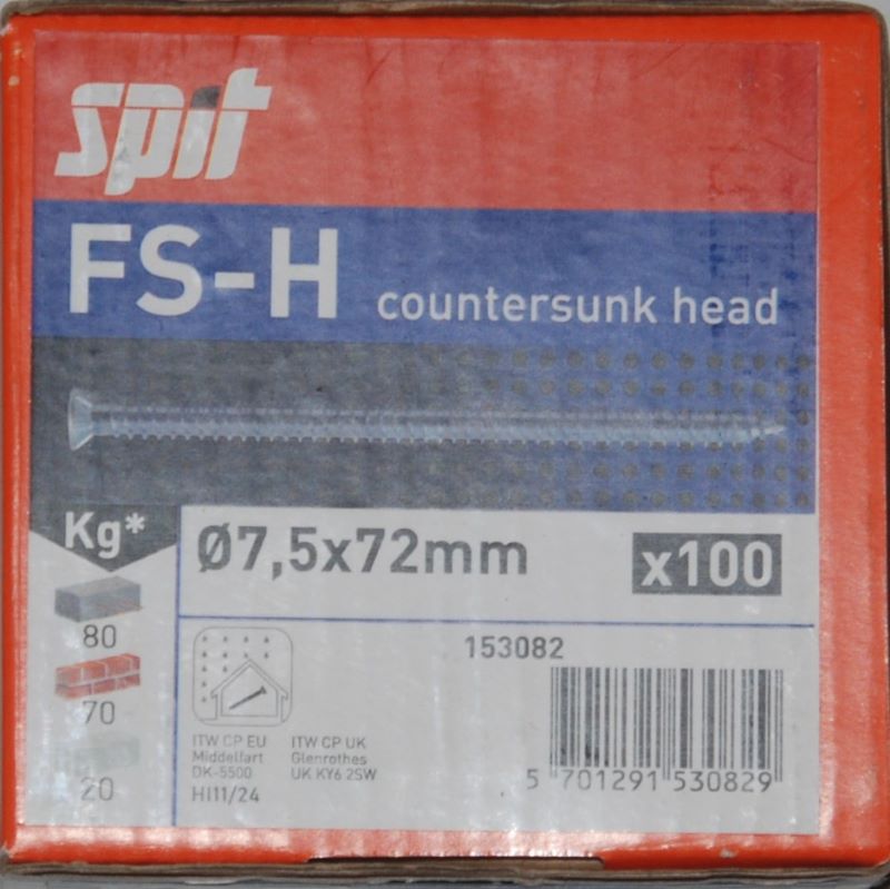100 Vis béton huisserie FS-C 7,5 x 112mm. Réf. 153082 SPIT