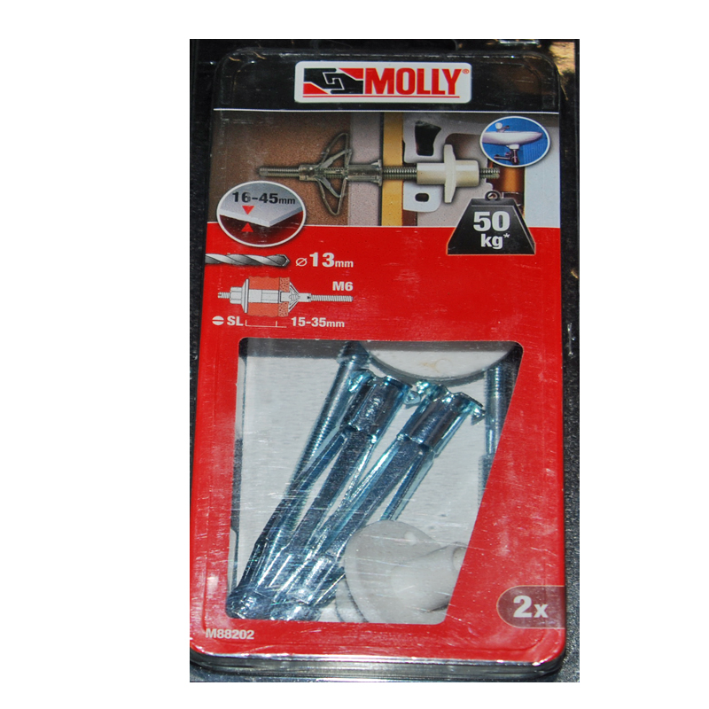 2 Chevilles métalliques à expansion avec 2 goujons double filetage M6 Ref. 88202 MOLLY . Pour épaisseur de 15 à 35mm.