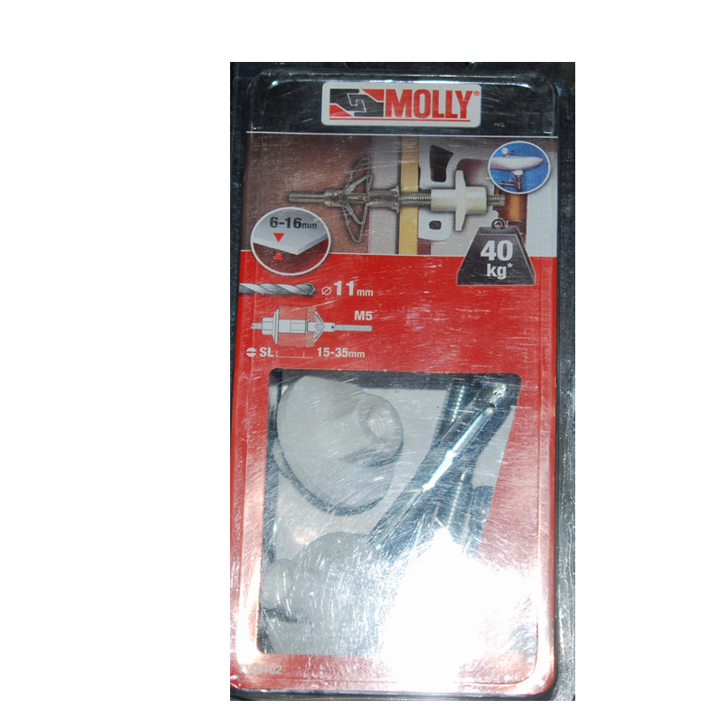 2 Chevilles métalliques à expansion avec 2 goujons double filetage M8x110mm Ref. 86102 MOLLY . Pour épaisseur de 6 à 16mm.