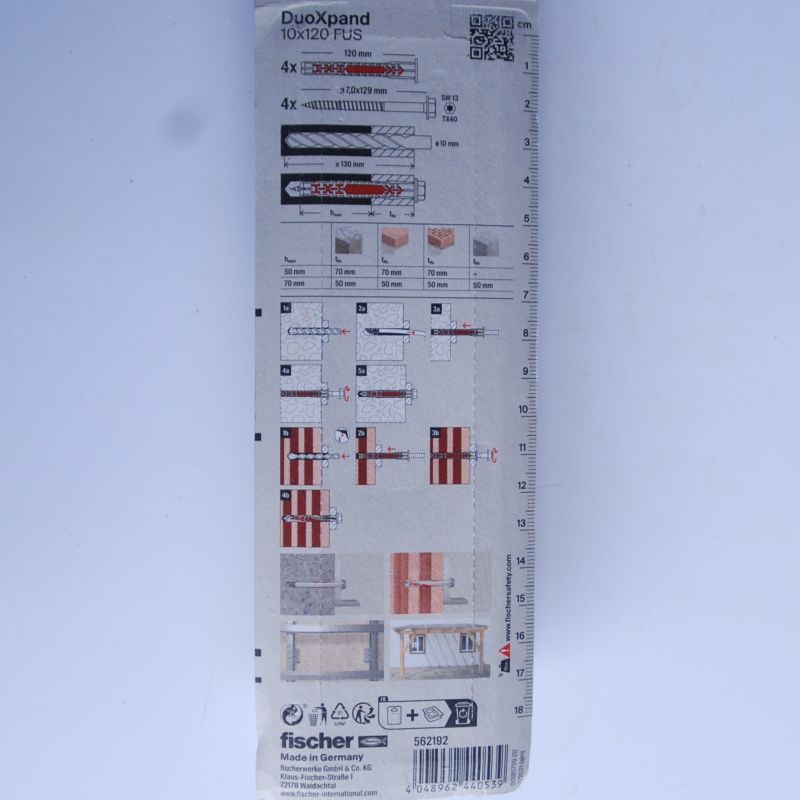 4 Chevilles rallongées DuoXpand 10 x 120 FUS en acier électrozingué Ref. 562192 FISCHER DAREX