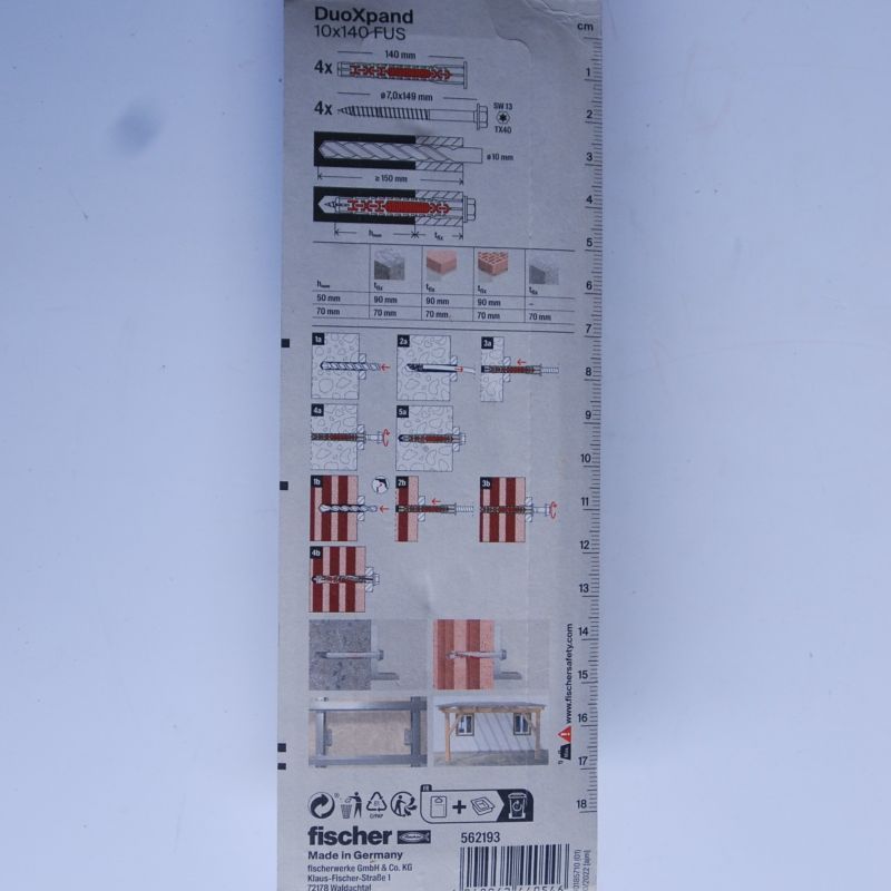 4 Chevilles rallongées DuoXpand 10 x 140 FUS en acier électrozingué Ref. 562193 FISCHER DAREX