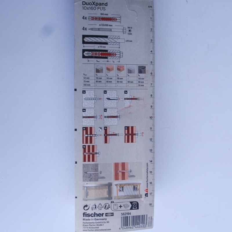4 Chevilles rallongées DuoXpand 10 x 160 FUS en acier électrozingué Ref. 562194 FISCHER DAREX