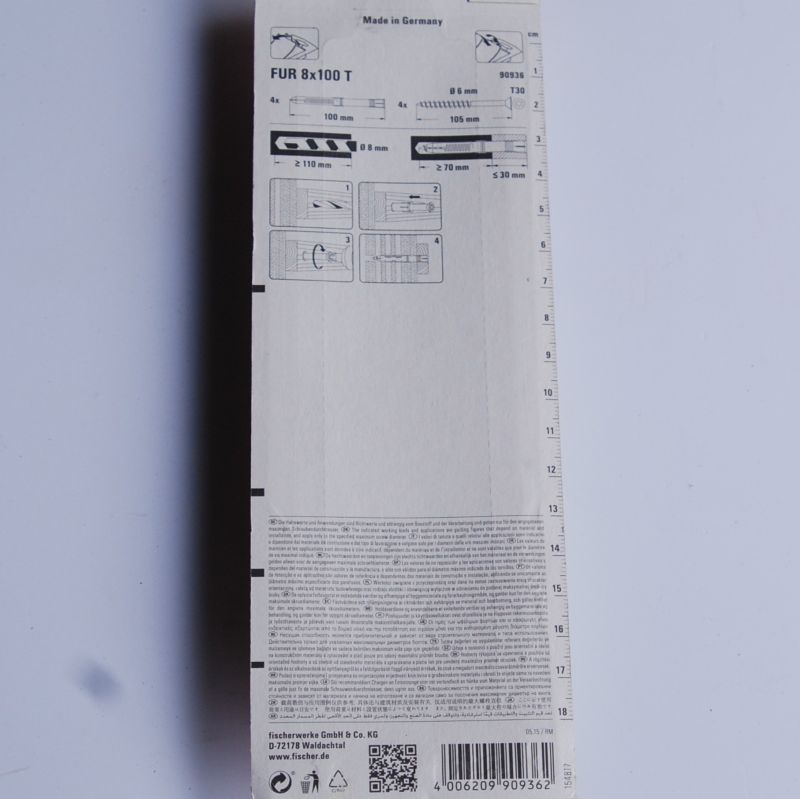 4 Chevilles rallongées FUR 8×100 T avec vis à tête fraisée Torx Ref. 90936 FISCHER
