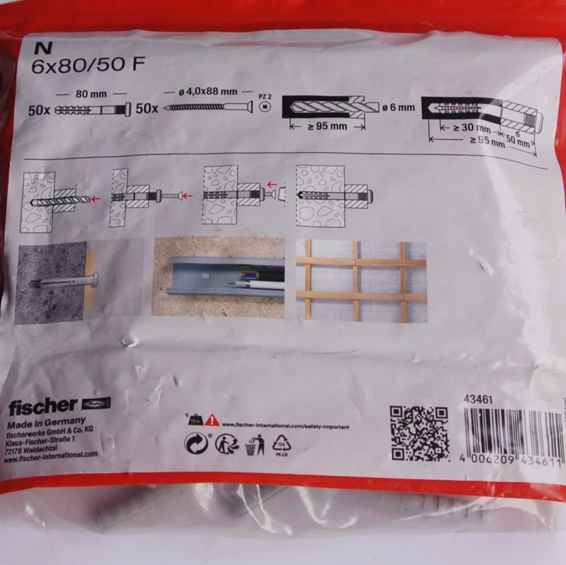 50 chevilles à frapper N 6 x 80/50 F FISCHER ref. 43461. Le montage rapide au marteau permet de gagner du temps : idéal pour les installations en série. Installation simple et sûre : la butée interne évite l’expansion prématurée de la cheville. Démontage ultérieur du clou possible grâce à l’empreinte cruciforme. Avec tête plate pour constructions métalliques.