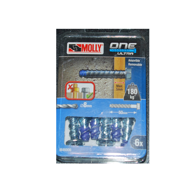 6 Vis 8 x 50mm. pour mur plein ref. M46006-XJ MOLLY. Béton, brique pleine. Charge maxi. 180Kg.