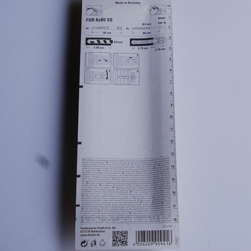 8 Chevilles rallongées FUR 8×80 SS avec vis à tête Hex K Ref. 90941 FISCHER.