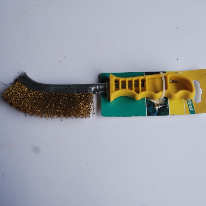 Brosse à main en acier laitonné WOLFCRAFT Réf. 2716000. La couleur du manche en plastique peut être différente de la photo.