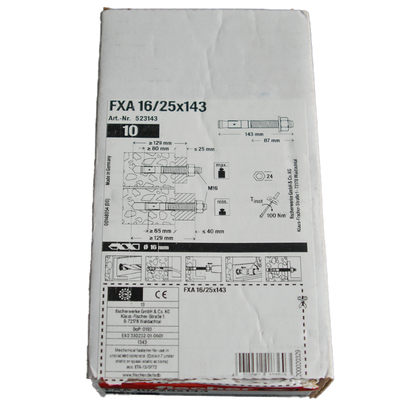 Boite de 10 goujons d’ancrages FXA 16 x 143 FISCHER ref. 523143.