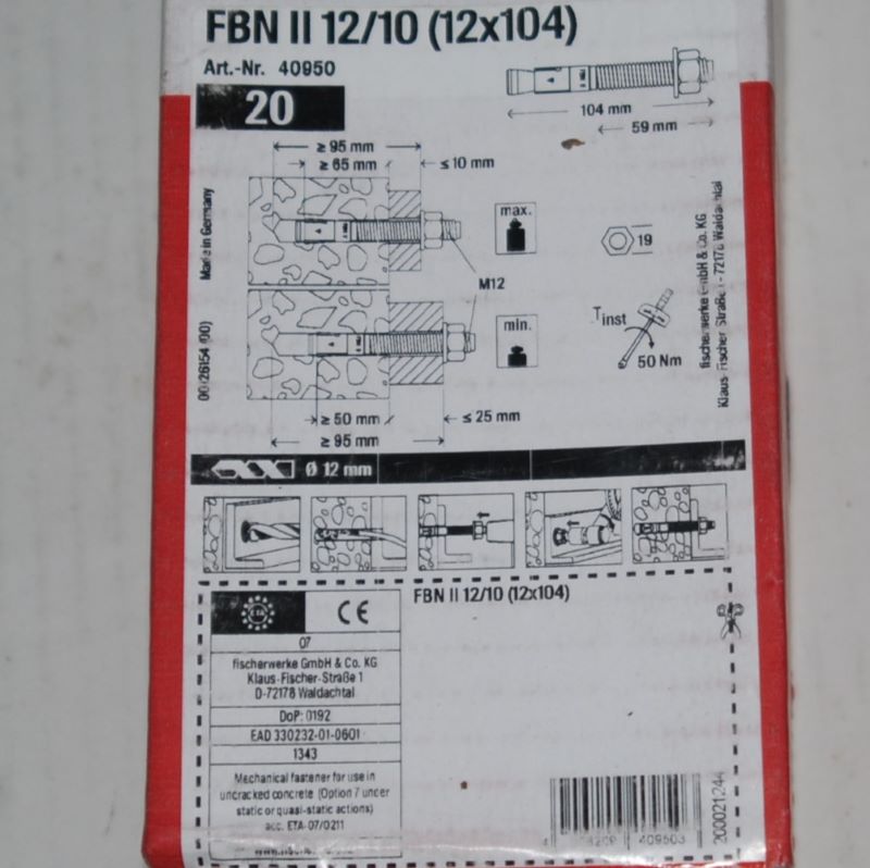 Boite de 20 goujons d’ancrages FBN II 12×104 mm en acier électrozingué FISCHER ref. 40950. Le FBN II atteint la résistance la plus élevée avec la profondeur d’ancrage standard. Ceci signifie moins de points de fixation et des platines plus petites. Si la profondeur d’ancrage réduite est utilisée, ceci diminue la profondeur de perçage et simplifie l’installation. Le filetage long permet les ajustements. De plus, le FBN II convient également pour les installations déportées. Ceci accroit la flexibilité. Montage simple grâce à un nombre réduit de coups de marteau et à un glissement minimal. La partie saillante de la tige filetée protège le filetage des dommages. Ceci permet de gagner du temps lors du montage et du démontage.