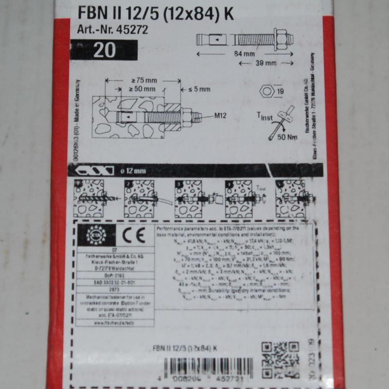 Boite de 20 goujons d’ancrages FBN II 12×84 mm en acier électrozingué FISCHER ref. 45272. Le FBN II atteint la résistance la plus élevée avec la profondeur d’ancrage standard. Ceci signifie moins de points de fixation et des platines plus petites. Si la profondeur d’ancrage réduite est utilisée, ceci diminue la profondeur de perçage et simplifie l’installation. Le filetage long permet les ajustements. De plus, le FBN II convient également pour les installations déportées. Ceci accroit la flexibilité. Montage simple grâce à un nombre réduit de coups de marteau et à un glissement minimal. La partie saillante de la tige filetée protège le filetage des dommages. Ceci permet de gagner du temps lors du montage et du démontage.