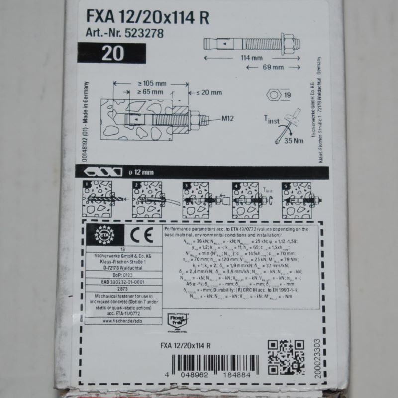 Boite de 20 goujons d’ancrages FXA 10 x 125mm. Inox A4 FISCHER ref. 523276.