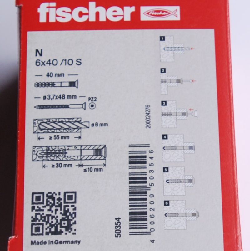 Boite de 50 chevilles à frapper N 6 x 40/10 S FISCHER ref. 50354. Le montage rapide au marteau permet de gagner du temps : idéal pour les installations en série. Installation simple et sûre : la butée interne évite l’expansion prématurée de la cheville. Démontage ultérieur du clou possible grâce à l’empreinte cruciforme. Avec tête fraisée.