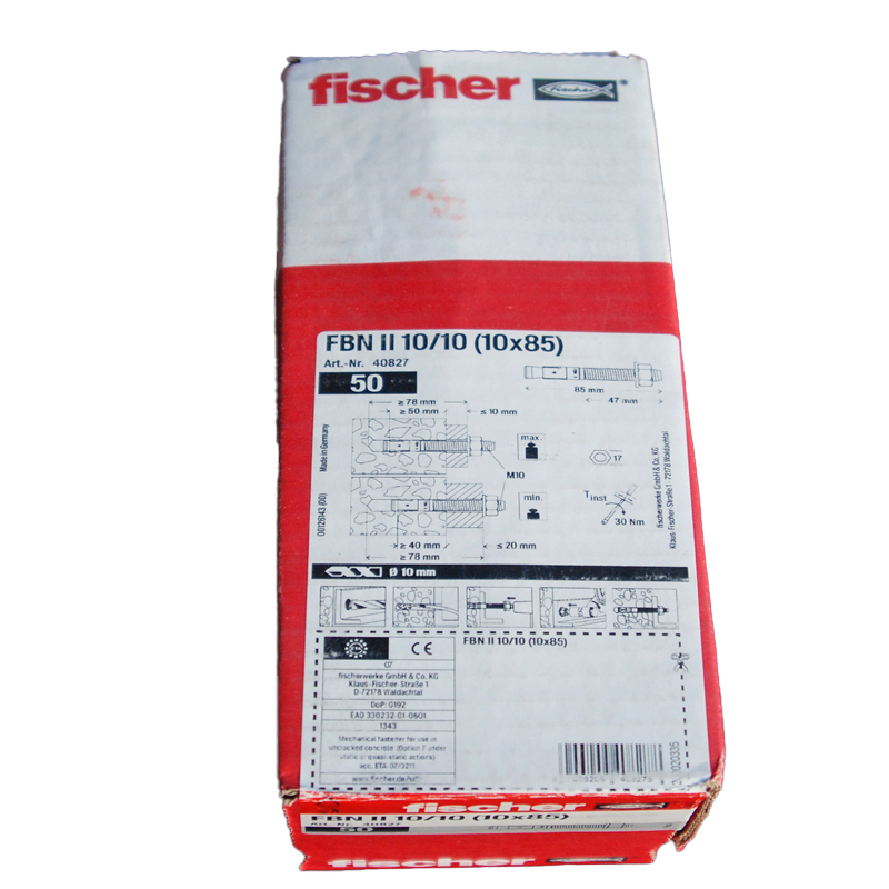 Boite de 50 goujons d’ancrages FBN II 10×85 mm en acier électrozingué FISCHER ref. 40827. Le FBN II atteint la résistance la plus élevée avec la profondeur d’ancrage standard. Ceci signifie moins de points de fixation et des platines plus petites. Si la profondeur d’ancrage réduite est utilisée, ceci diminue la profondeur de perçage et simplifie l’installation. Le filetage long permet les ajustements. De plus, le FBN II convient également pour les installations déportées. Ceci accroit la flexibilité. Montage simple grâce à un nombre réduit de coups de marteau et à un glissement minimal. La partie saillante de la tige filetée protège le filetage des dommages. Ceci permet de gagner du temps lors du montage et du démontage.