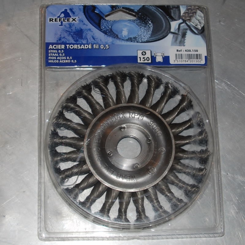Brosse circulaire pour touret D.150mm Al. 20mm. Acier torsadé REFLEX
