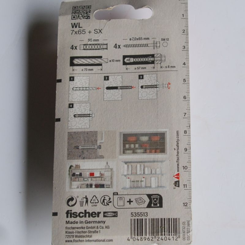 Kit de fixation pour petit chauffe-eau dans matériaux pleins WL 7X65/4K NV FISCHER Réf. 535513. Avec cheville, rondelle et vis. La cheville permet une utilisation dans tous les matériaux de construction pleins. Installation rapide et facile.