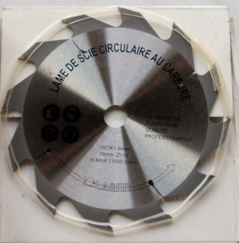 Lame de Scie Circulaire D.160mm, Alésage 16mm, 12 Dents carbure. Denture alternée.