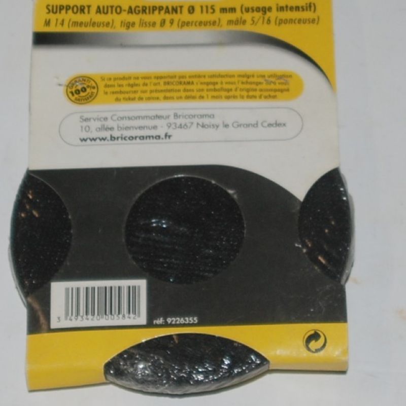 Plateau ponceur auto-agrippant pour perceuses ou meuleuses D.115 BRICORAMA. Alésage M14..
