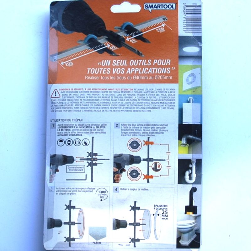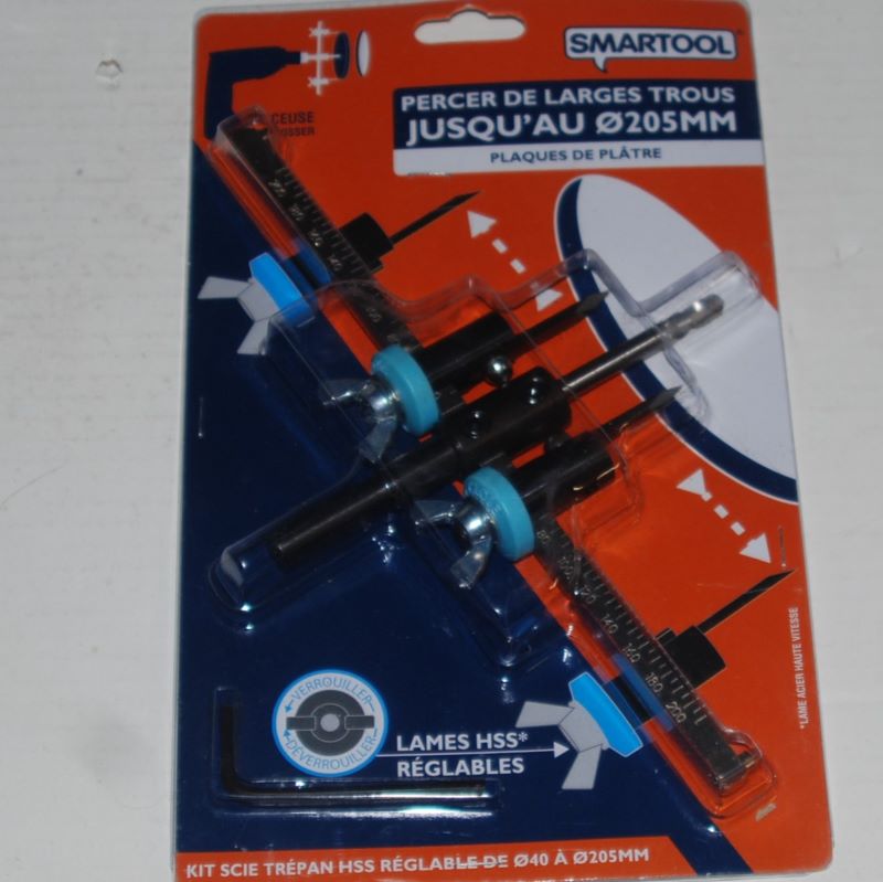 Scie Trépan HSS réglable D.40-205mm. pour Plaques de Plâtre SMARTOOL..